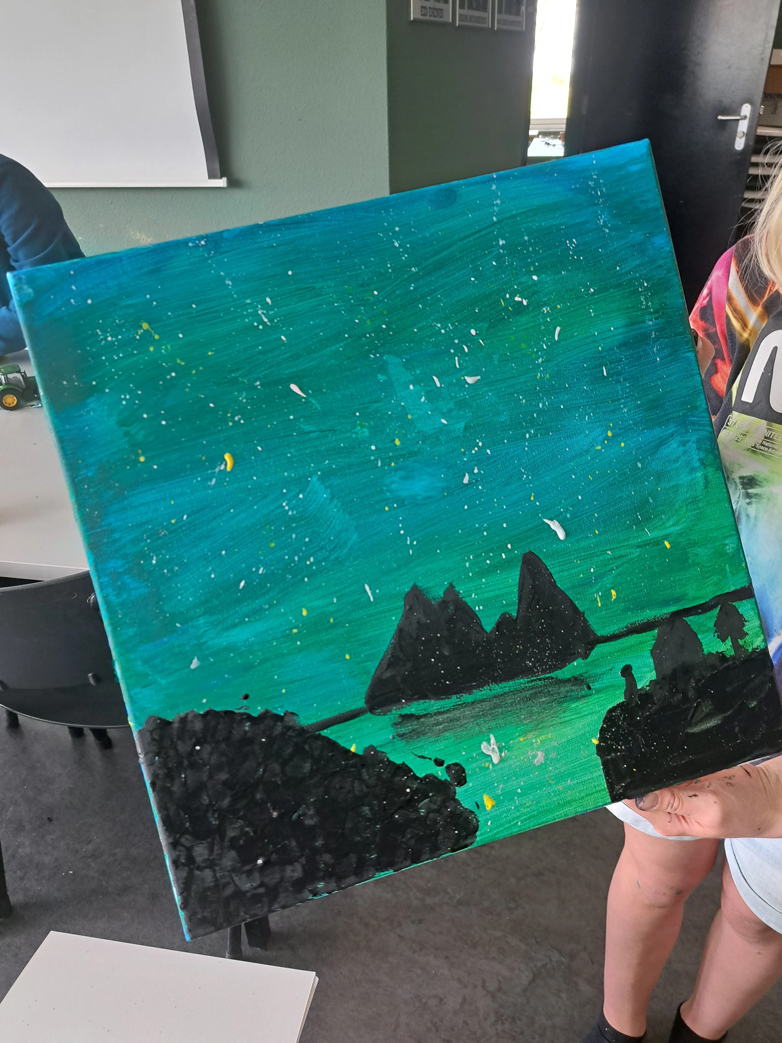 Door de kinderen te laten visualiseren wat ze stom, spannend of eng vinden, dagen we de kinderen uit om zichzelf bloot te stellen in hun kunstwerken. Door hierna de lichtgevende verf toe te voegen, bieden we niet alleen een wow-effect, maar werken we ook aan een stukje emotionele weerbaarheid van het kind.